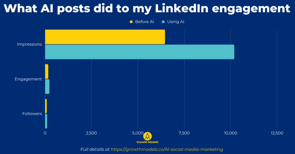 Long story short, the AI content seemed to help increase the daily benchmark of my reach and engagements on social.