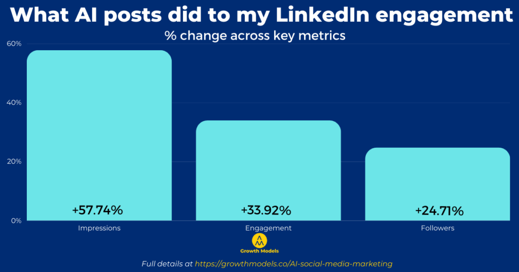 And if we again look at the % changes from using AI content, you can see that everything is doing a little better than just manual only posts.