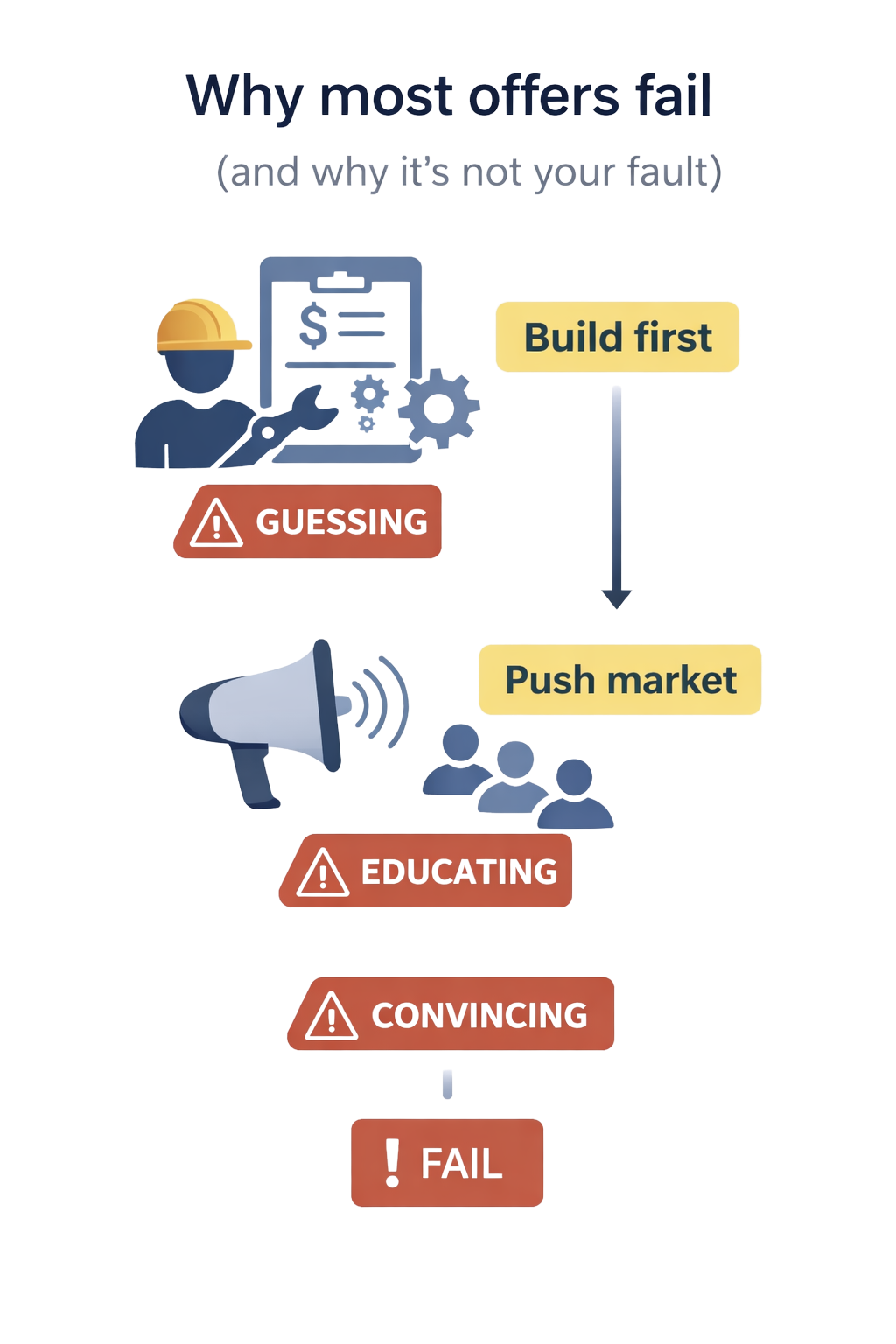 The moment you build before demand, you turn your offer into a guess.