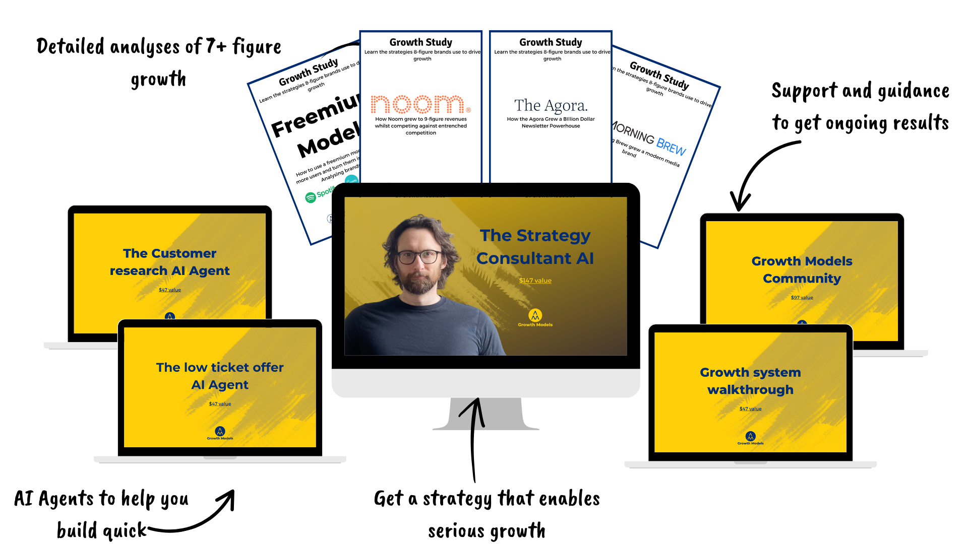 If you go through the Growth Strategy AI, use the systems it recommends, and don’t walk away with a system for easier growth, just email support at growthmodels.co, and I’ll personally refund your payment.
